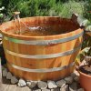 Just like a barrel, the wood – in the case of our customer it was weatherproof Douglas fir – has to dry for 24-48 months, or rather until it has only a certain residual moisture. If this is given, the coopers select the suitable raw staves and bring them into shape. Lids and staves are created and are put together neatly and tied with hot-dip galvanized hoops. Depending on the customer’s wishes, the rain collector or bath tub is provided with a surface treatment. An inlet or outlet for water is also optional and possible according to customer specifications.