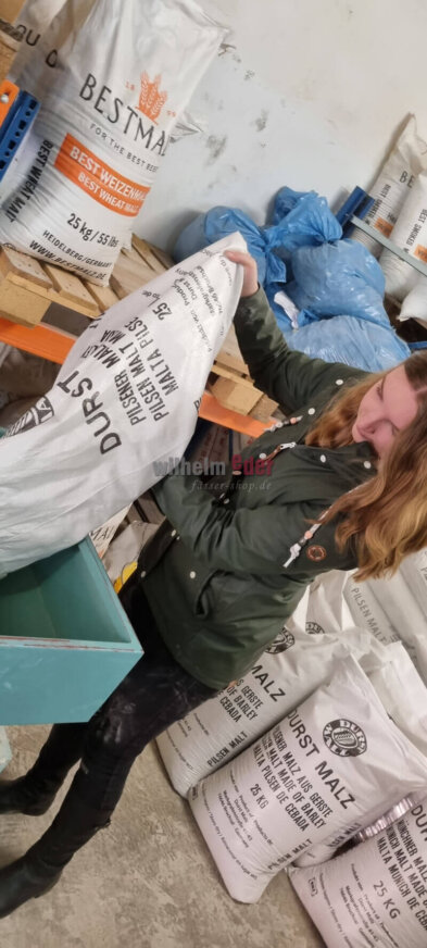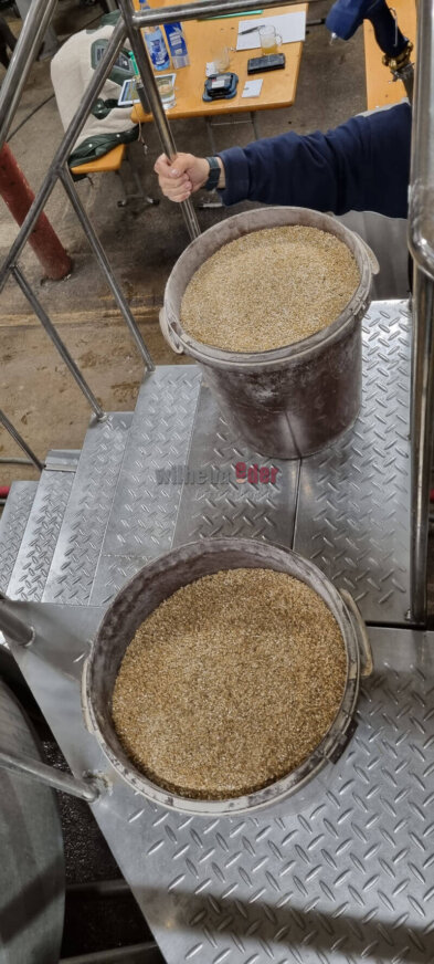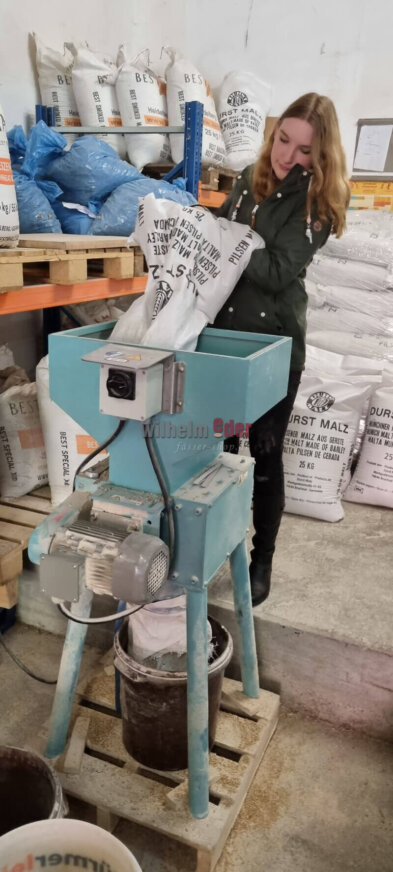 On 28.04.2022 it was then so far: Brewing day! At 8 a.m. Jonas Eder and I set off in the direction of Heidelberg to brew our beer with Andi at CraftCell. First we had to grind the malt. Several sacks full of regional malt had to be milled. While we were running the malt through the grist mill, the water was heated in the brewhouse. At a water temperature of 67 degrees celcius, we finally started mashing. Mashing means that the milled malt was poured into the brewhouse with the heated water. Do not forget to stir or there will be lumps!